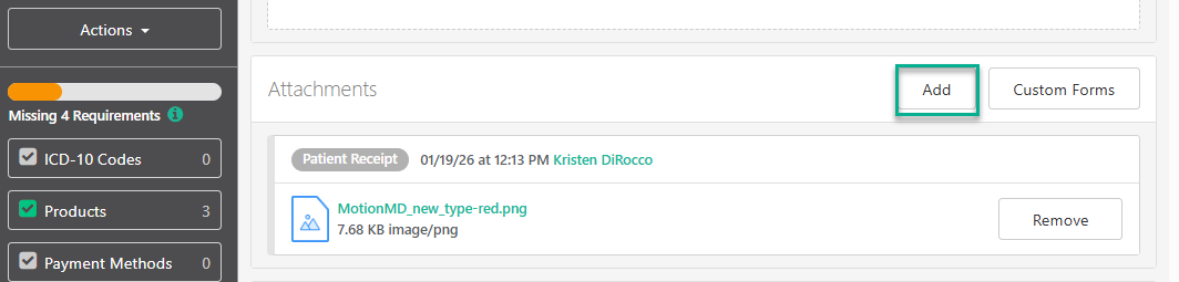 After successfully processing the check payment, save copy of the receipt and upload as an attachment to the MotionMD PA.