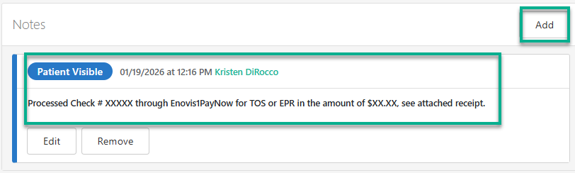 - Add a Billing Note on the PA stating TOS/EPR payment was paid via Enovis1PayNow portal.