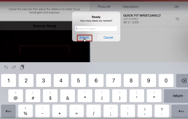 A pop-up window will appear asking for the number of labels you will need to ship the product back. Type in the number of labels needed and select Submit.