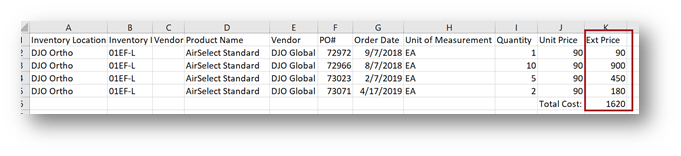 [Enhancement] Add an Extended Price column on the Purchase Order History report to calculate the total Cost of the items ordered on the PO