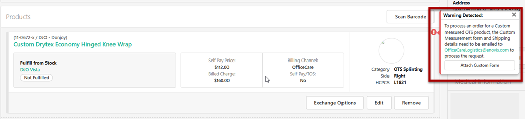 *IMPORTANT*: CUSTOM OTS PRODUCTS MUST BE ORDERED DIRECTLY FROM OC LOGISTICS. A custom fabricated product cannot be processed as a Drop Ship and/or restocked in MotionMD.