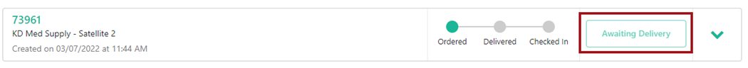 Once the order is placed an Awaiting Delivery message is displayed indicating the order is now pending at the Warehouse.