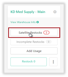 Select Satellite Restocks button from the Warehouse location.