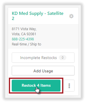 A Satellite Location can place an order to the Warehouse by selecting the Restock button on the Inventory Location page.