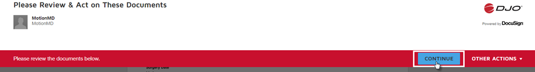 The MotionMD user will generate a DocuSign email from the patient agreement to the email address listed in patient demographics. The subject line of the email will be: Please sign the Patient Agreement from MotionMD